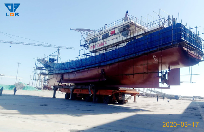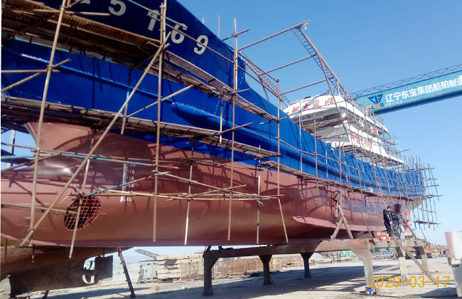 3月17日,在遼寧東寶集團(tuán)船舶制造有限公司,一艘新建39.8米漁船涂裝工序順利完工,準(zhǔn)備進(jìn)行下水前的各項(xiàng)檢測(cè)。 March 17, in liaoning dongbao group shipbuilding co., LTD., a newly built 39.8-meter fishing boat coating process was successfully completed, ready to launch the various tests.